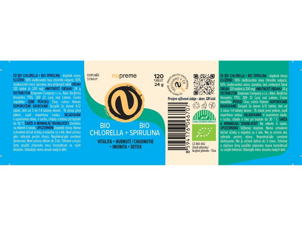 Chlorella + Spirulina 120tbl BIO NUPREME