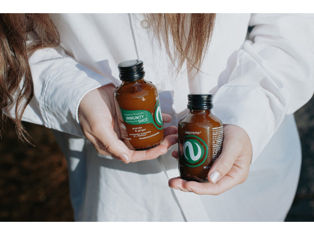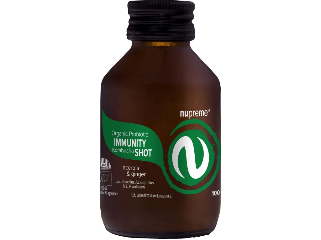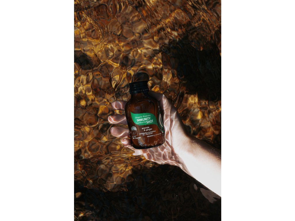 Základem shotu je koncentrovaný fermentát z kombuchy – bohatý extrakt získaný z tradičně fermentovaného čajového nápoje, který obsahuje bioaktivní složky vznikající během řízené fermentace.