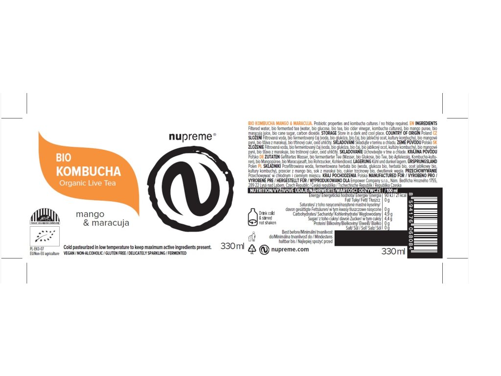 Na trhu najdeme i kombuchy z koncentrátů nebo vysokoteplotně pasterované, tedy bez života a živin. Kombucha Nupreme se vydává jinou cestou – je vyrobena fermentací z pravých čajových lístků a ovoce v BIO kvalitě, a pro zachování kvality je stabilizována nízkoteplotním ošetřením, které respektuje obsah aktivních složek.