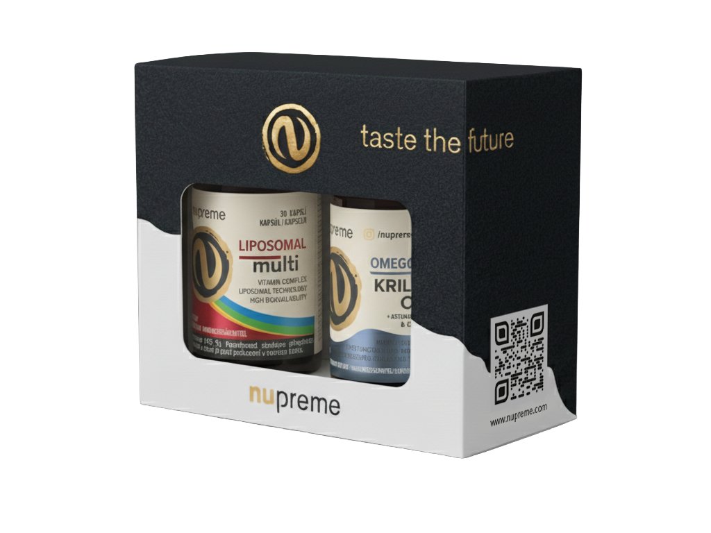 Představujeme Vám exkluzivní balíček v elegantní dárkové krabičce – kombinaci Liposomálního multivitaminu a Omega-3 krilového oleje.