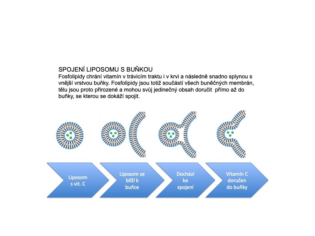 A to je velký přínos liposomu, fosfolipidy totiž ochrání vitamín v trávicím traktu i v krvi a následně snadno splynou s vnější vrstvou buňky. Účinná látka, v tomto případě vitamín C, tak dorazí na místo, kde jej potřebujeme nejvíce, do buňky. A v případě technologie LIPOCELLTECH™ bez jakýchkoliv přidaných látek.