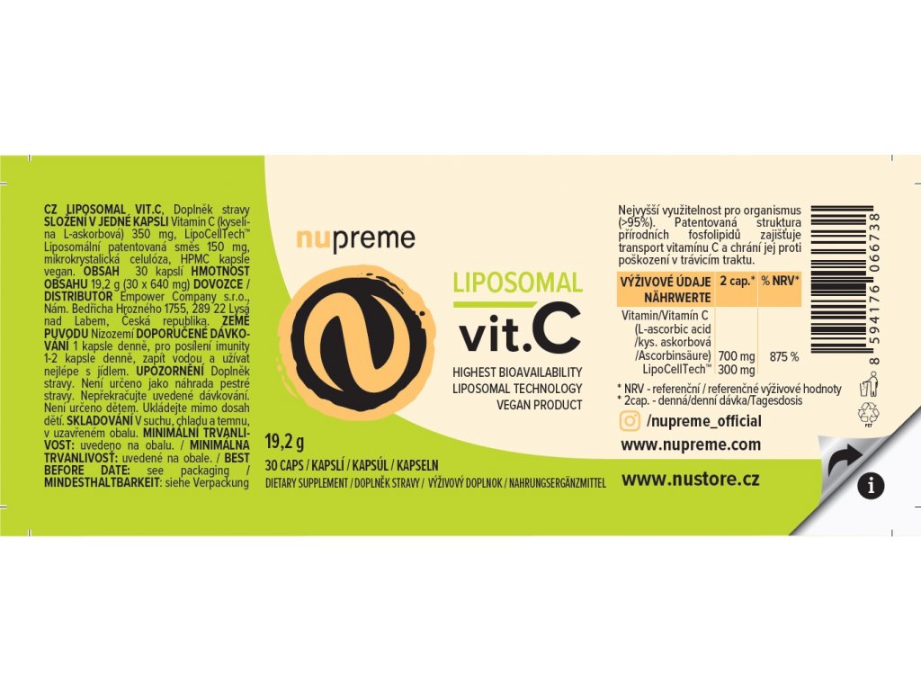 Synteticky vyrobený vitamín C je pro naše tělo sice hůře akceptovatelný a jako méně přirozený prvek jej z větší části vyloučí, a to až z 80 %. Zatížíme žaludek, ledviny, játra, ale efekt je poměrně nízký. Řešením v tomto případě může být LIPOSOMAL Vitamín C NUPREME s technologií LIPOCELLTECH™, která pomůže více než 95 % vitamínu C dopravit až přímo do buněk našeho organismu.