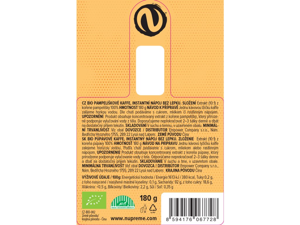 Pampeliškové kaffe 180 g BIO NUPREME